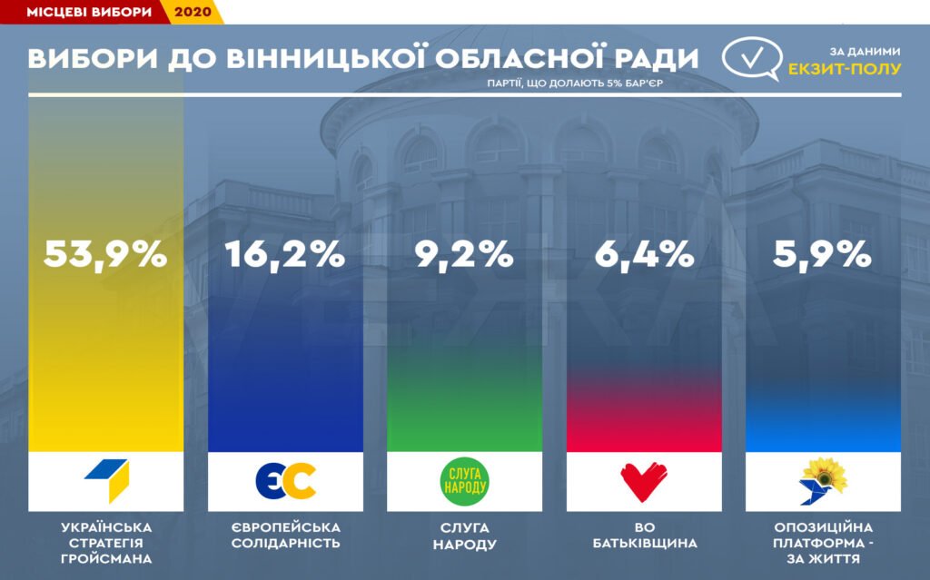 Партія колишнього міського голови Вінниці та експрем’єра Володимира Гройсмана отримала більшість в міській та обласній раді, більше 20 голів ОТГ, мера обласного центру та голову обласної ради.