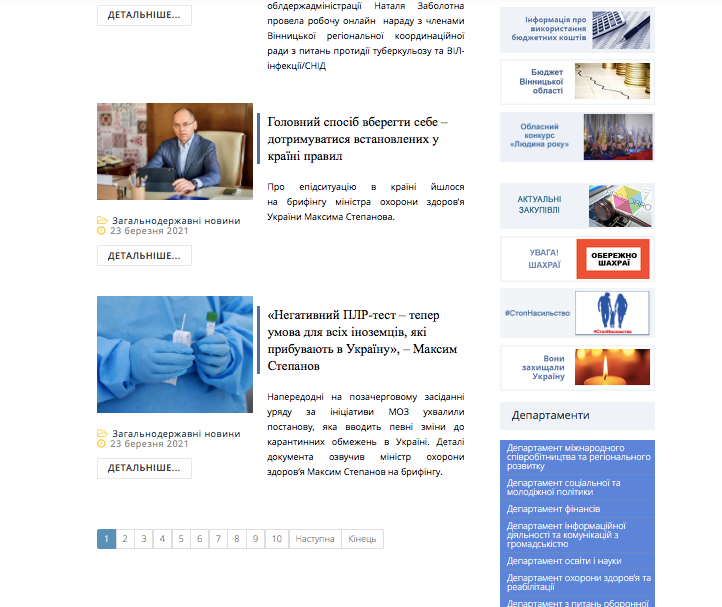 З усієї стрічки новин Вінницької облдержадміністрація (а це і є вся стрічка новин за останні дві доби) на статус власного контенту претендує хіба що інформація про одну (!) онлайн нараду заступниці голови ОДА з членами Вінницької регіональної координаційної ради з питань протидії туберкульозу та ВІЛ-інфекції/СНІД.