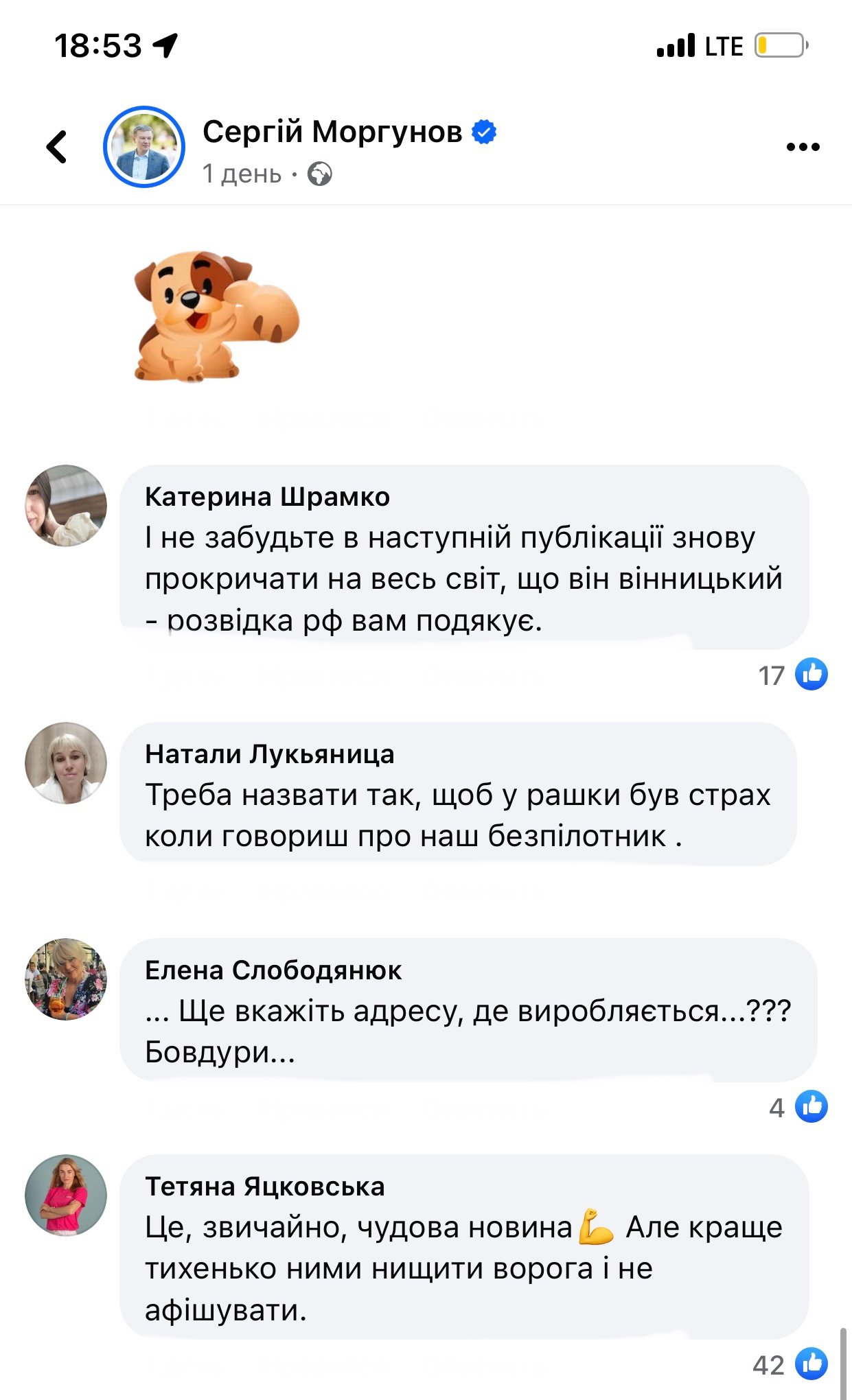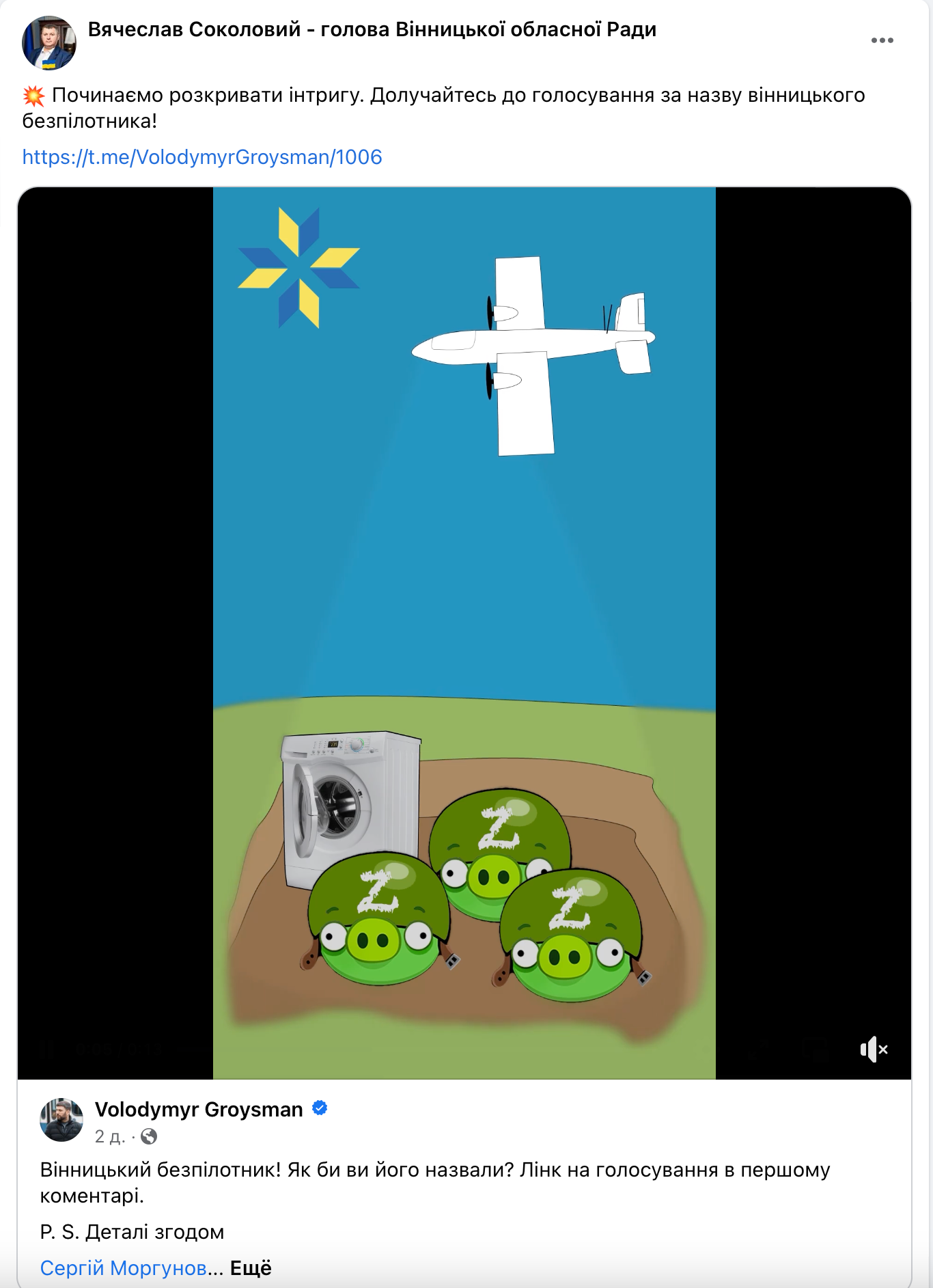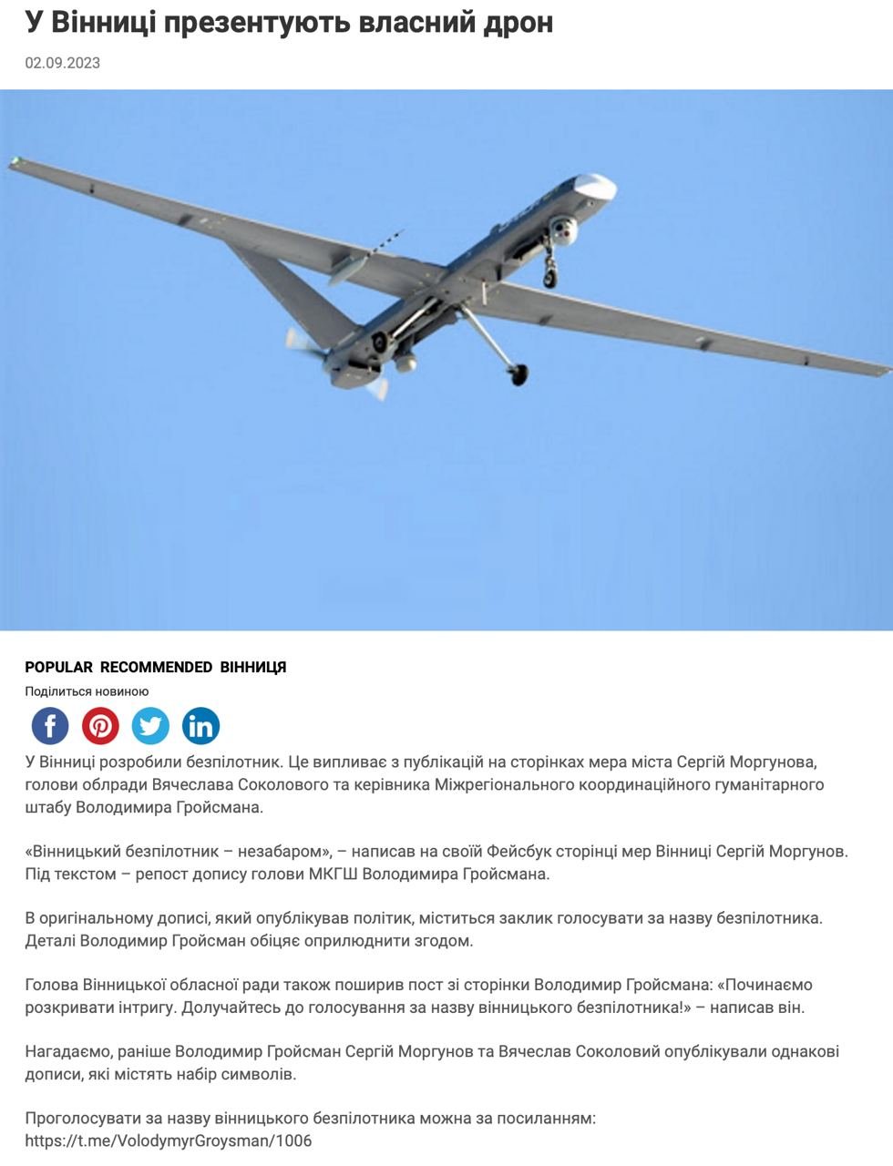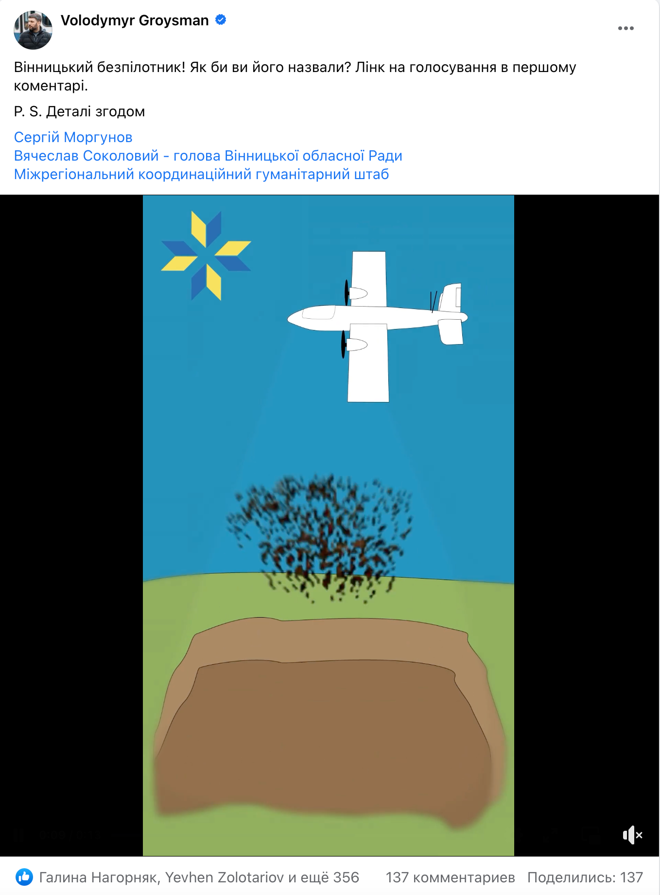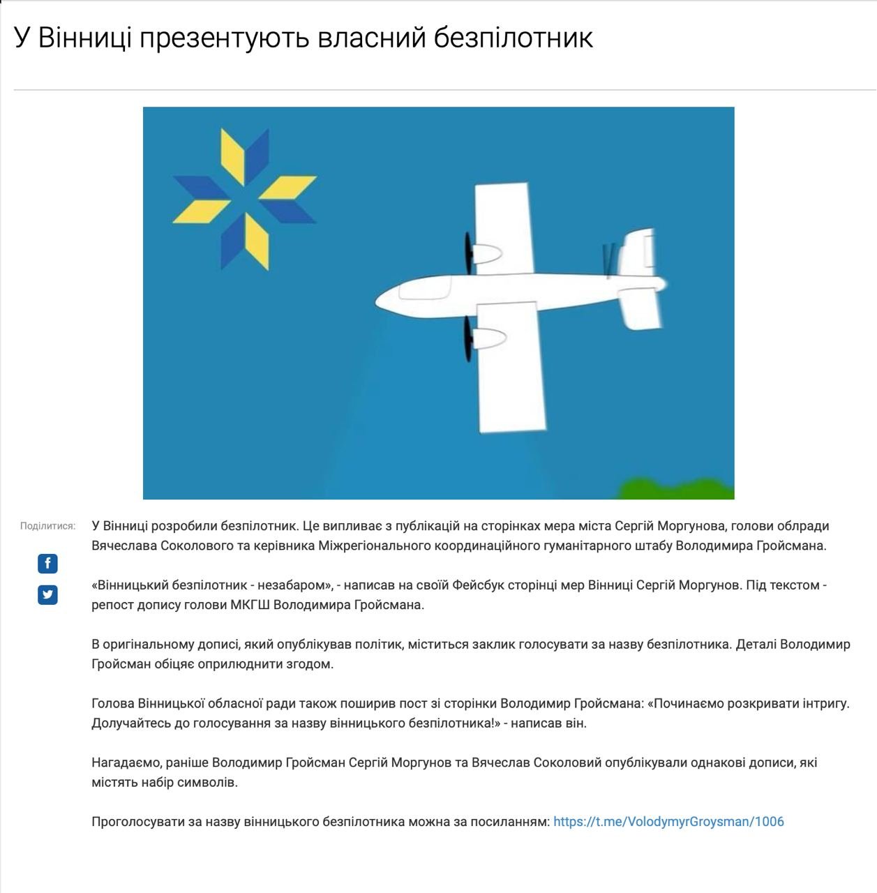 Втім, вінницьких політиків це не зупинило, і наступного дня, ігноруючи небезпеку для масового виробництва, ті самі особи оголосили в соцмережах конкурс на найкращу назву для «вінницького безпілотника».