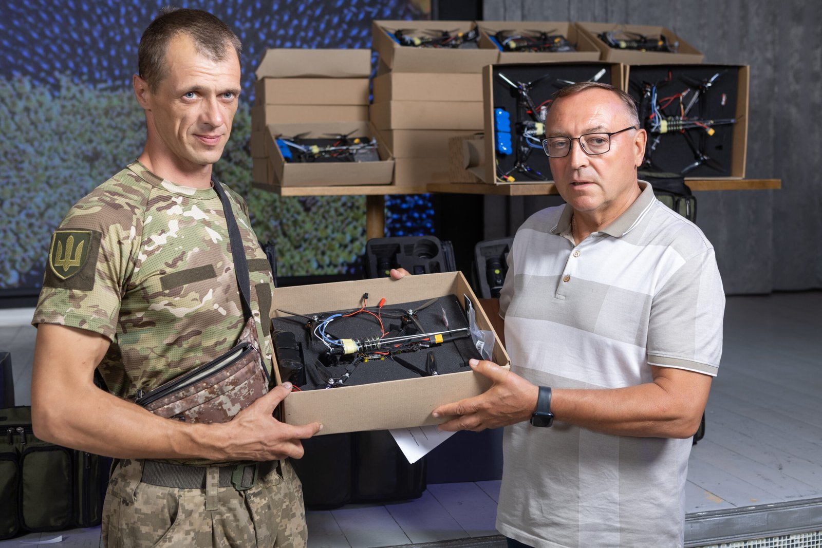 У військові частини буде доставлено 50 дронів FPV 7 дюймів з вмонтованою камерою, 10 тепловізійних прицілів DAHUA c435 з дальністю виявлення цілі 1900 м, 9 блоків багатоканальної зарядки «Bandera Power», 5 супутникових модемів Starlink та інше.