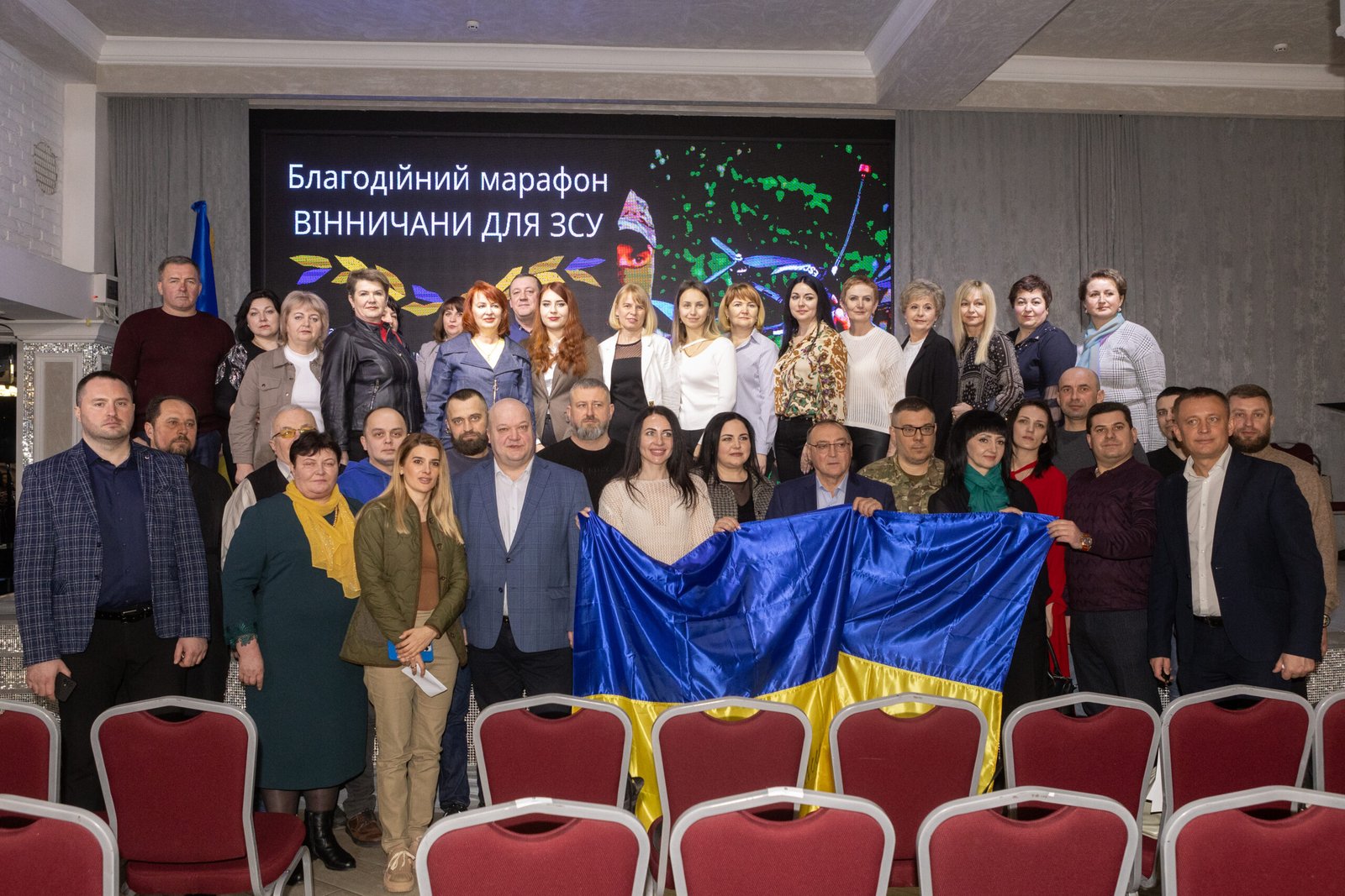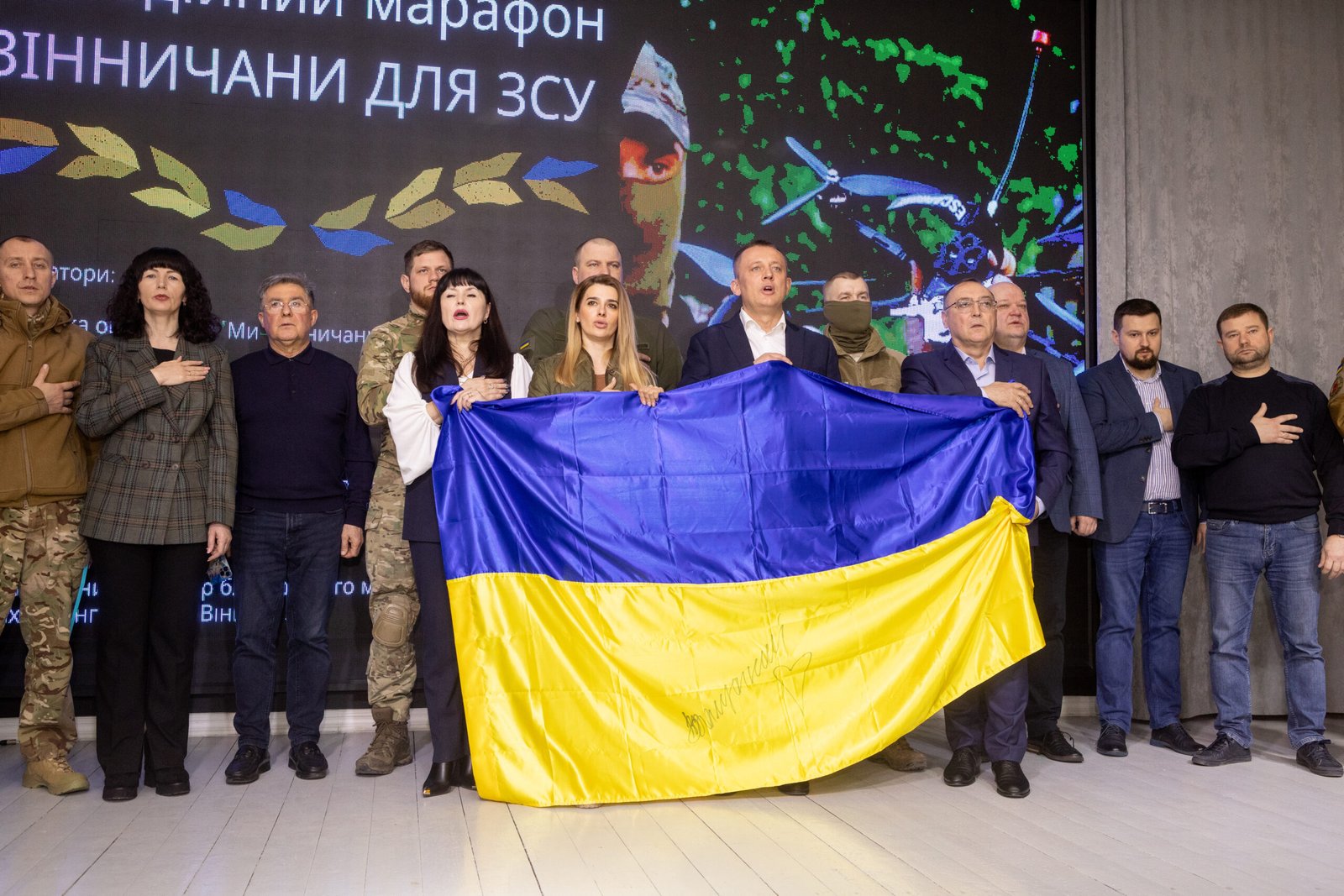 Під час проведення Благодійного марафону «Вінничани для ЗСУ», у ході якого було передано військовим 100 дронів та зібрано ще понад 2 млн грн на придбання необхідного обладнання і техніки для фронту, керівник БФ «Український Альянс» Микола Філонов передав передав команді громадського об’єднання «Ми – Вінничани» прапор України з підписом Валерія Залужного.