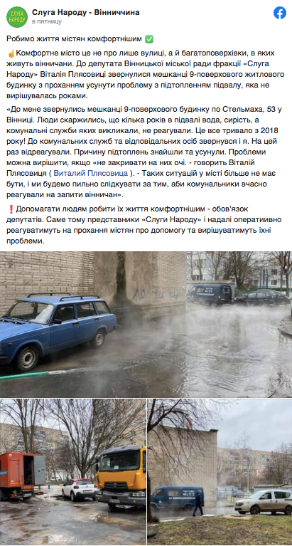 Бо «допомагати людям робити їхнє життя комфортнішим – обов’язок депутатів. Саме тому представники «Слуги Народу» і надалі оперативно реагуватимуть на прохання містян про допомогу та вирішуватимуть їхні проблеми, використовуючи всі можливі ресурси»,- пише спільнота “Слуга народу Вінниччина”.