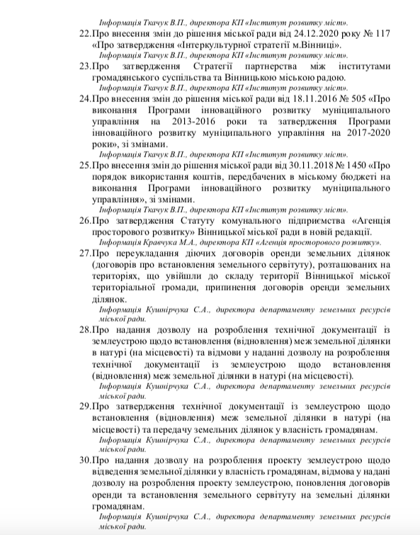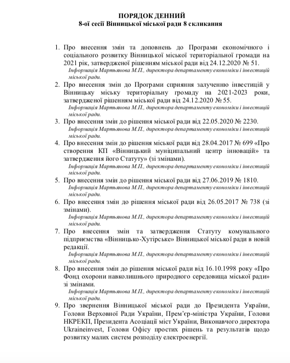 Згідно розпорядження мського голови, 30 квітня відбудеться восьма сесія Вінницької міської ради.