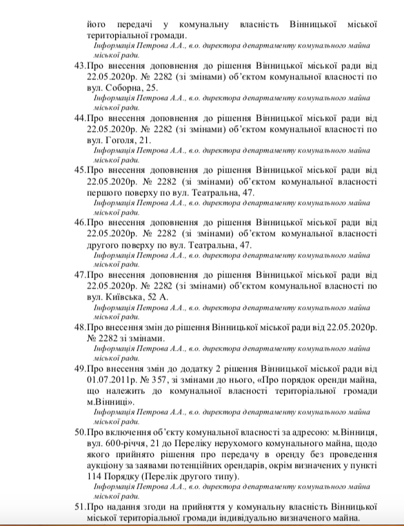 Також міська рада планує виділити кошти на реконструкцію колишньої будівлі Нацбанку (зараз там розташовуються департаменти міськради), реконструкцію аеровокзалу аеропорту “Вінниця”, приміщення заводу “Кристал”, в якому розміститься “Вінницький інноваційний парк” та будівлю “Туристичного хабу”.